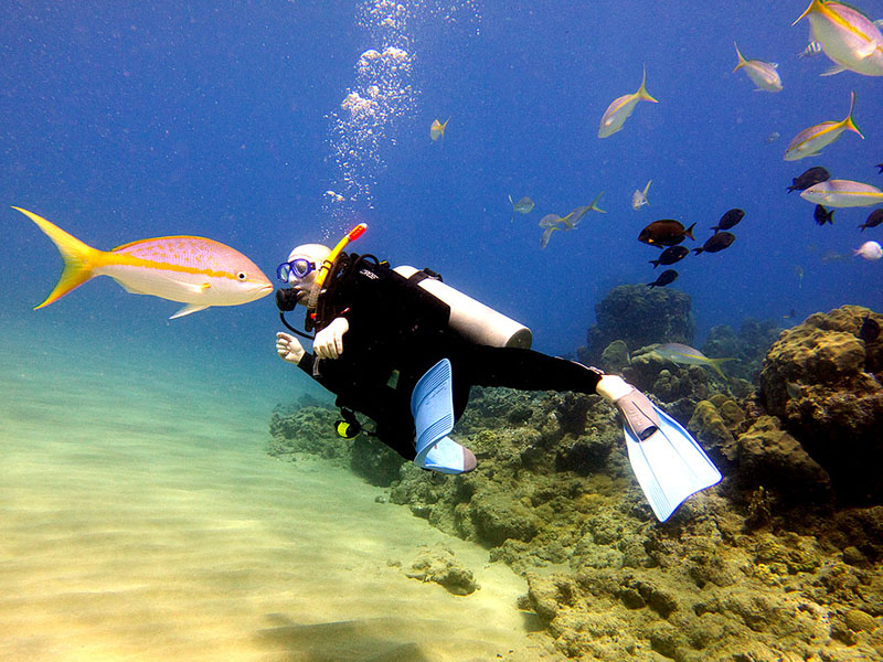 3 Rocks and Coral Garden Shallow: The perfect spot for beginners, snorkelers and less experienced divers who want to be surrounded by colorful tropical fish. The coral heads are in 3-12m/10-40ft of water. From the third rock we are diving down to Coral Garden Shallow where you can see beautiful fan corals and sea whips.