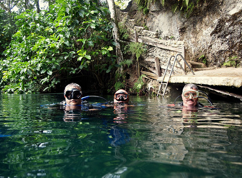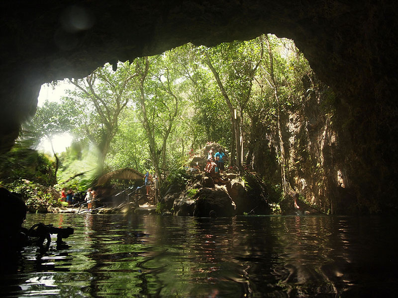 A second tunnel brings us back to Lake Dudu where you can spot mouthbreeders, fresh water shrimp, turtles and eels. At the end of the lake we enter a third tunnel which is 60m/63yd long and 10m/33ft wide. We surface in an air pocket full of spectecual stalactites, stalacmites and a small cave. After 2 exciting dives we exit the water and head for Playa Grande or Playa Caleton where we enjoy delicious food and drinks. Have you ever tried a Pina Colada in a fresh pineapple? Around 4pm we go back to Sosua. An unforgettable day comes to an end.